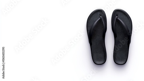 Black Flip Flops: A pair of stylish black flip-flops, minimalist and contemporary, perfect for a summer getaway.