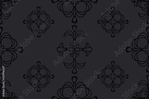 Black floral damsk onament seamless patternon color background. Design for fabric, apparel textile, book, interior, wallpaper