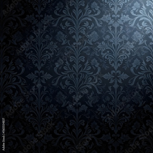 Black Floral Pattern Background: Dark Ornamental Wallpaper Texture with Subtle Spotlight Effect