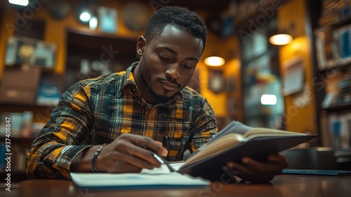 Black foreign service officer working at embassy desk handling passports indoors during daytime