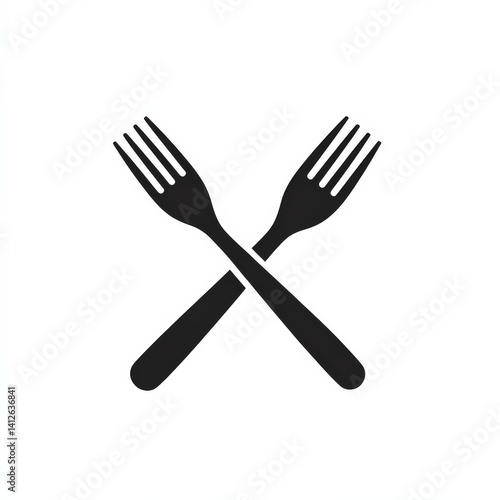 Black Forks Crossed on White Background for Culinary and Dining Use