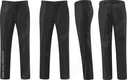 Black Formal Pants Technical Flat Sketch (CAD) | Dress Trousers Vector Template for Professional Office Wear