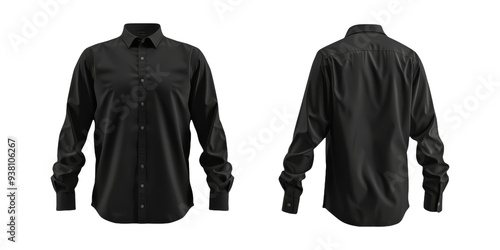 Black Formal Shirt Mockup Front and Back View. Black Shirt with Long Sleeves on Isolated Background
