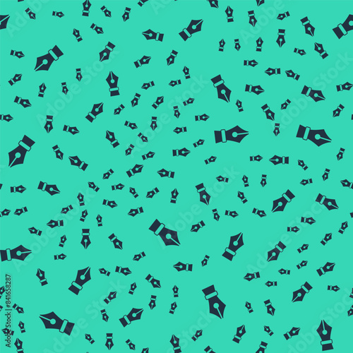 Black Fountain pen nib icon isolated seamless pattern on green background. Pen tool sign. Vector