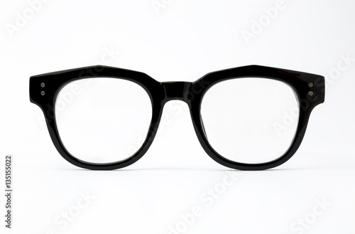 black frame glasses isolated on white background.
