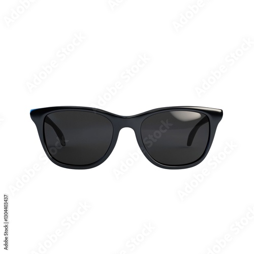 Black framed sunglasses with dark lenses isolated on a plain white background for product photography