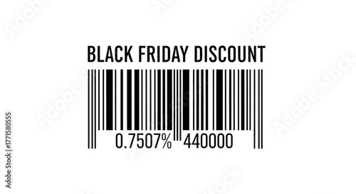 Black friday discount barcode with percentage and product code isolated on transparent background black friday element