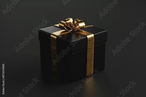 Black Friday Sale and Christmas presents concept. Gift box with black ribbon on red satin textile, close up view