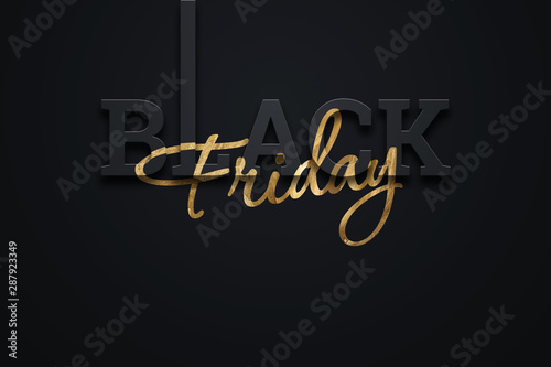Black friday sale inscription golden letters on a dark background, design template. Black friday banner. Copy space, creative background, gold. 3D Illustration, 3D Design.