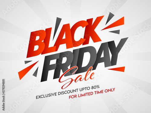 Black Friday Text in Paper Cut with 80% Discount Offer on White Rays Background for Sale. Can be used as poster design.