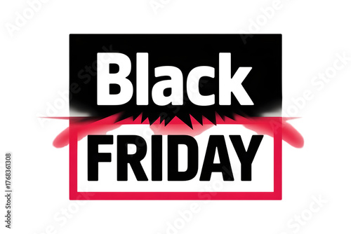 Black friday text with a red slash and frame isolated on transparent background