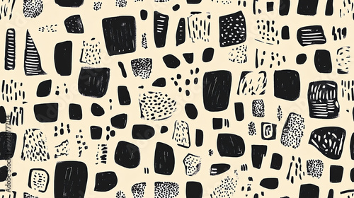 Black geometric seamless pattern with texture overlay