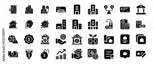 Black Glyph Icons Real Estate Finance Banking vector