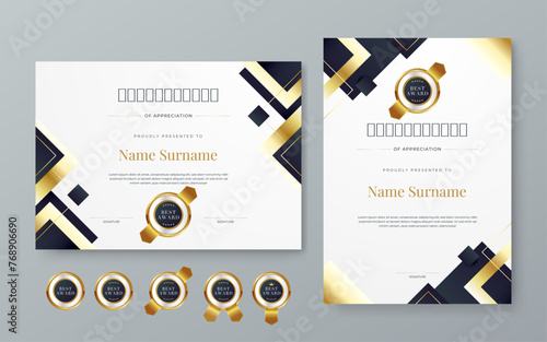 Black gold and white vector modern elegant and luxury certificate template for corporate. For award, business, diploma, workshop, award, graduation, completion, competition and education