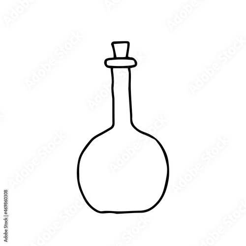 Black hand drawing vector illustration of a glass empty bottle with a cork isolated on a white background