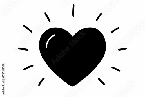 Black Hand Drawn Heart Icon Radiating Light Rays white