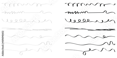 Black hand drawn underline calligraphy set. Modern simple dark lines. Isolated dark line set. Dark curved underline icon set on white page.