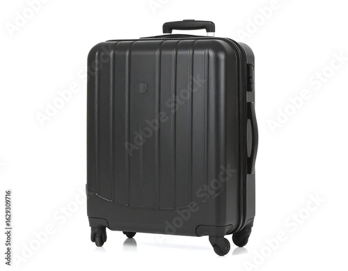 Black hard-shell rolling suitcase, upright, four wheels, simple design