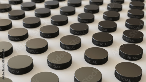 black Hockey Pucks in an Even Grid on a Simple Concrete Surface