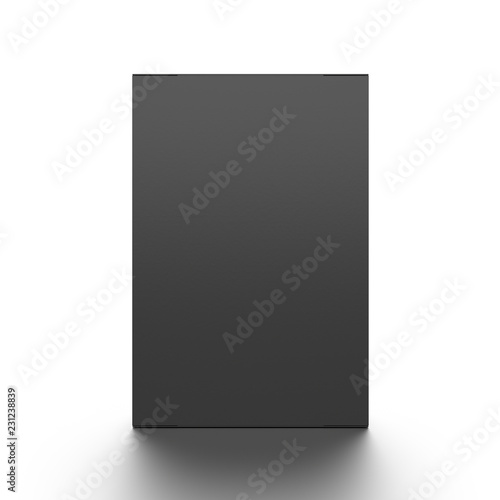 Black horizontal blank box from front angle. 3D illustration isolated on white background.