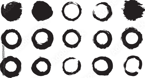 Black Ink Brush Stroke Circles Vector Grunge Texture Set Design