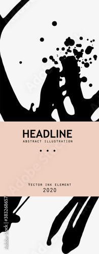 Black ink brush stroke on white background. Japanese style. Vector illustration.