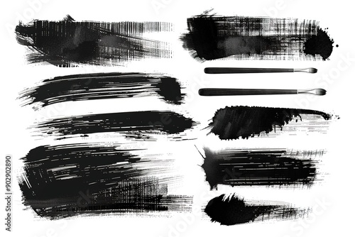 Black ink brush strokes, straight lines and shapes isolated on a white background