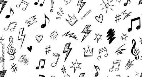 Black Ink Musical Doodles with Hearts Stars Crowns