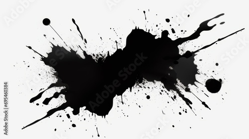 Black ink splash isolated on white background. Ink Splatter. Splash and drops of black liquid.