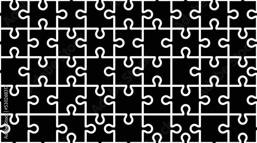 Black jigsaw puzzle seamless pattern template. Vector background illustration.