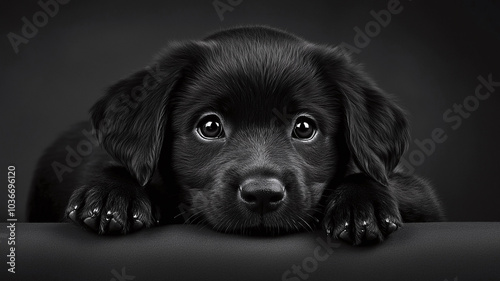 Black Labrador Puppy - a cute black puppy posing for his first portrait
