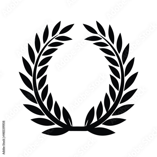 Black Laurel Wreath Circle Symbol, Icon, Design, Graphic, Vector, Award, Emblem, Glory, Victory, Lea