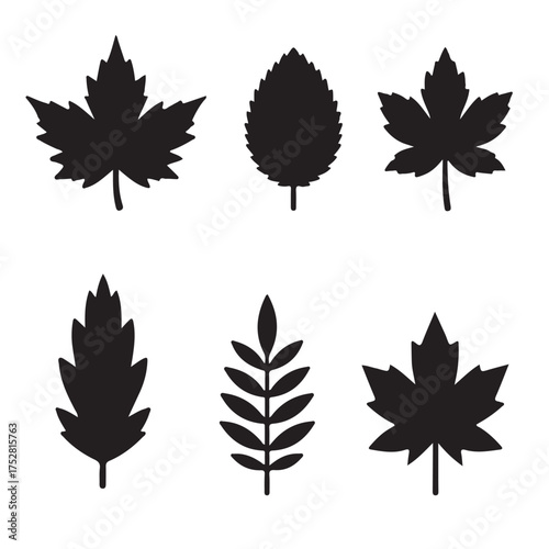 Black Leaf Silhouettes Vector Set – Nature Foliage Icons