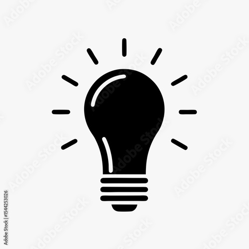 Black light bulb icon with rays isolated on white background, vector illustration symbolizing idea or innovation