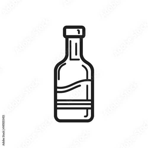 Black Line Art of Bottle on Transparent Background