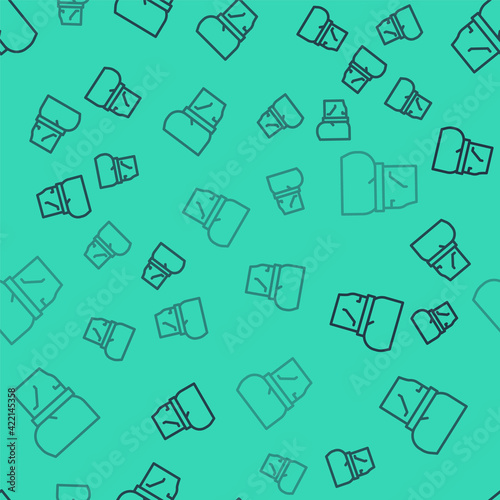 Black line Beer belly icon isolated seamless pattern on green background. Vector