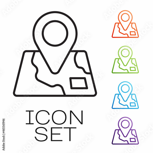 Black line Folded map with location marker icon isolated on white background. Set icons colorful. Vector