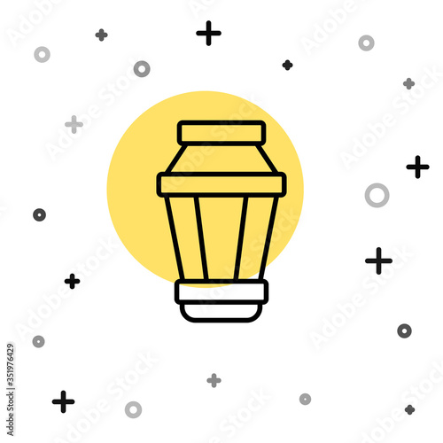 Black line Garden light lamp icon isolated on white background. Solar powered lamp. Lantern. Street lamp. Random dynamic shapes. Vector Illustration