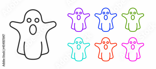 Black line Ghost icon isolated on white background. Happy Halloween party. Set icons colorful. Vector