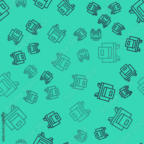 Black line Holy book of Koran icon isolated seamless pattern on green background. Muslim holiday, Eid Mubarak, Eid al-fitr, Ramadan Kareem. Vector
