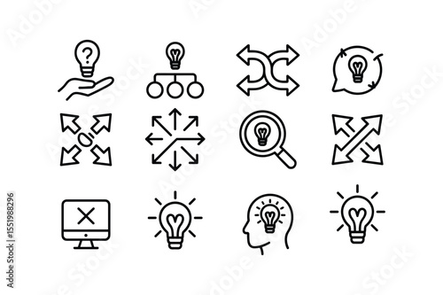 Black Line Icon Set Ideas Arrows Lightbulb icons