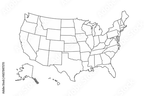 Black line map of the United States of America, vector illustration of the national border of the United States.