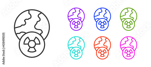 Black line Planet earth and radiation symbol icon isolated on white background. Environmental concept. Set icons colorful. Vector