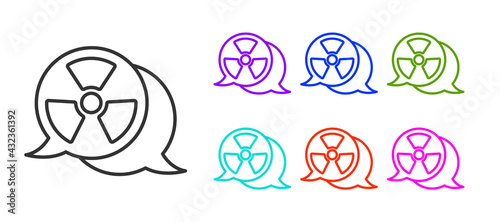 Black line Radioactive icon isolated on white background. Radioactive toxic symbol. Radiation Hazard sign. Set icons colorful. Vector