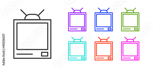 Black line Retro tv icon isolated on white background. Television sign. Set icons colorful. Vector Illustration.