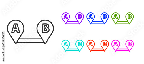Black line Route location icon isolated on white background. Map pointer sign. Concept of path or road. GPS navigator. Set icons colorful. Vector Illustration.