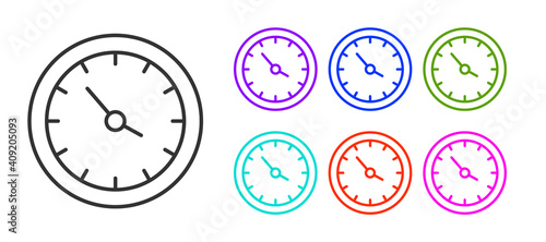 Black line Train station clock icon isolated on white background. Set icons colorful. Vector.