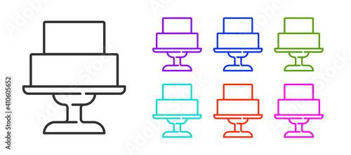 Black line Wedding cake icon isolated on white background. Set icons colorful. Vector.
