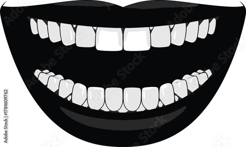 Black lips and white teeth illustration for dental health and beauty eps silhouette