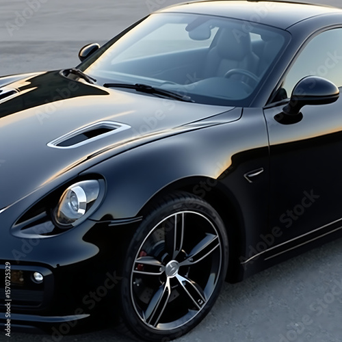 Black luxury sports car with classic chrome headlights